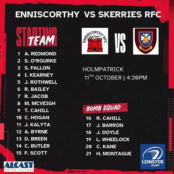 J1 Metro Team for today's game versus Skerries. 4:30pm at Holmpatrick, Skerries RFC
