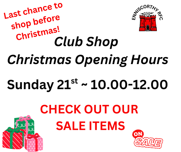 This Sunday is the last chance to shop in the club shop before Christmas. The shop will be open from 10-12 during minis.