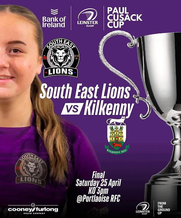 Saturday 3pm. After a very successful season with League promotion won, SE Lions face off against near neighbours Kilkenny in the Cup Final in Portlaoise. All support greatly appreciated to cheer on our players on this great occasion