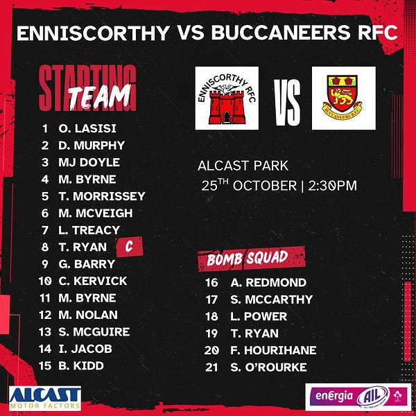 Team Squad for AIL Round 4 Game versus Buccaneers. Kick off 14:30 Alcast Park